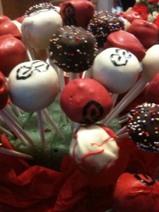 – Everyone loved the cake pops, and the bowl arrangement looked like a fantastically tasty centerpiece on a red, white, and black Wolfpack table.