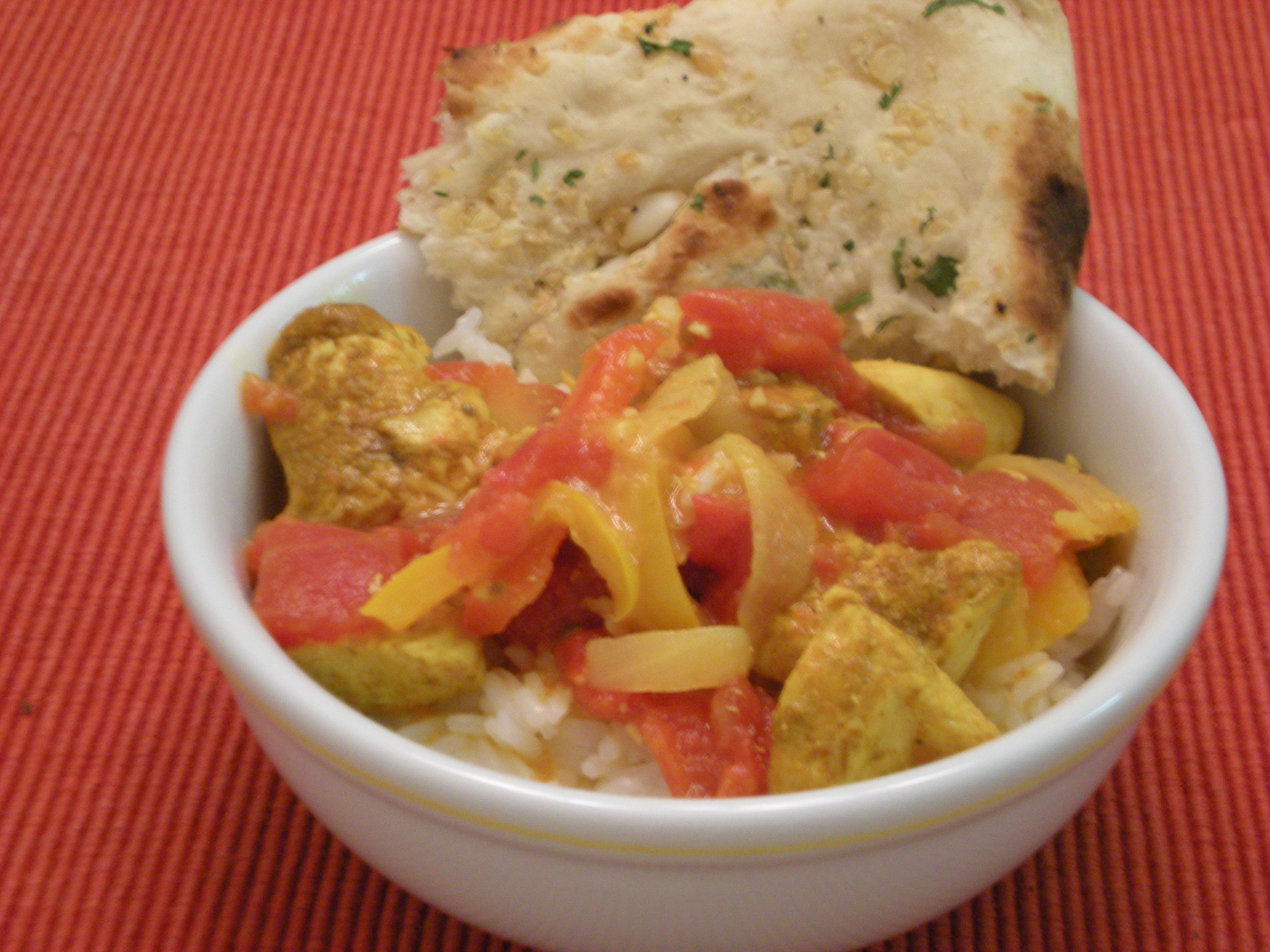 I served it up on top of bowls of jasmine rice and served naan on the side. (If you’re lucky enough to have a Trader Joe’s where you live, get your frozen garlic naan from there. It’s easy, cheap, and delicious. I guess if you’re crazy, you could find a recipe online and make it yourself.)