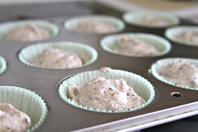 I preheated the oven to 350 F and lined my cupcake tin. I thought a monochromatic look would be nice, so I used blue paper liners. In a food processor, I pureed a pint plus a little more of the blueberries, and set it aside.