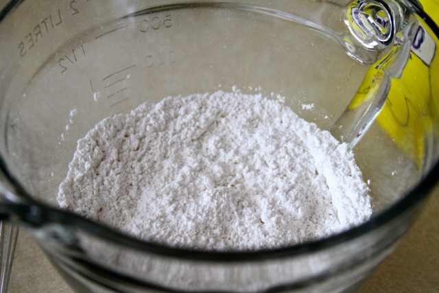 I sifted 3/4 cup all-purpose flour, 1/2 tsp baking powder, and a pinch of salt into a small bowl and set it aside.