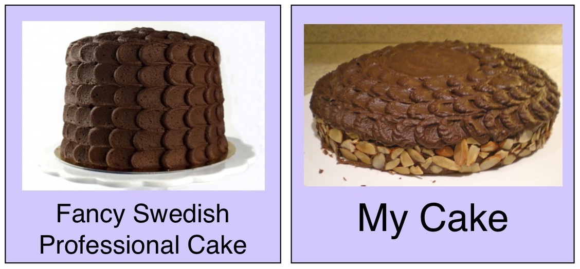 When I saw that picture, I decided I needed to try out that frosting technique. And ever since I bought some almond extract, I’ve been meaning to use it for more than just the truffles that I messed up so badly I had to throw away. Enter almond cake with chocolate frosting.