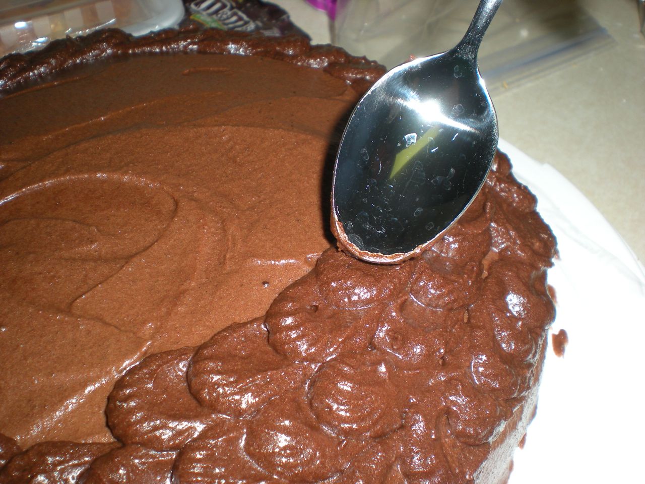 We left the center of the cake flat, free of dollops. I could say it was for effect, but really, we ran out of frosting. Looks good, though, huh?