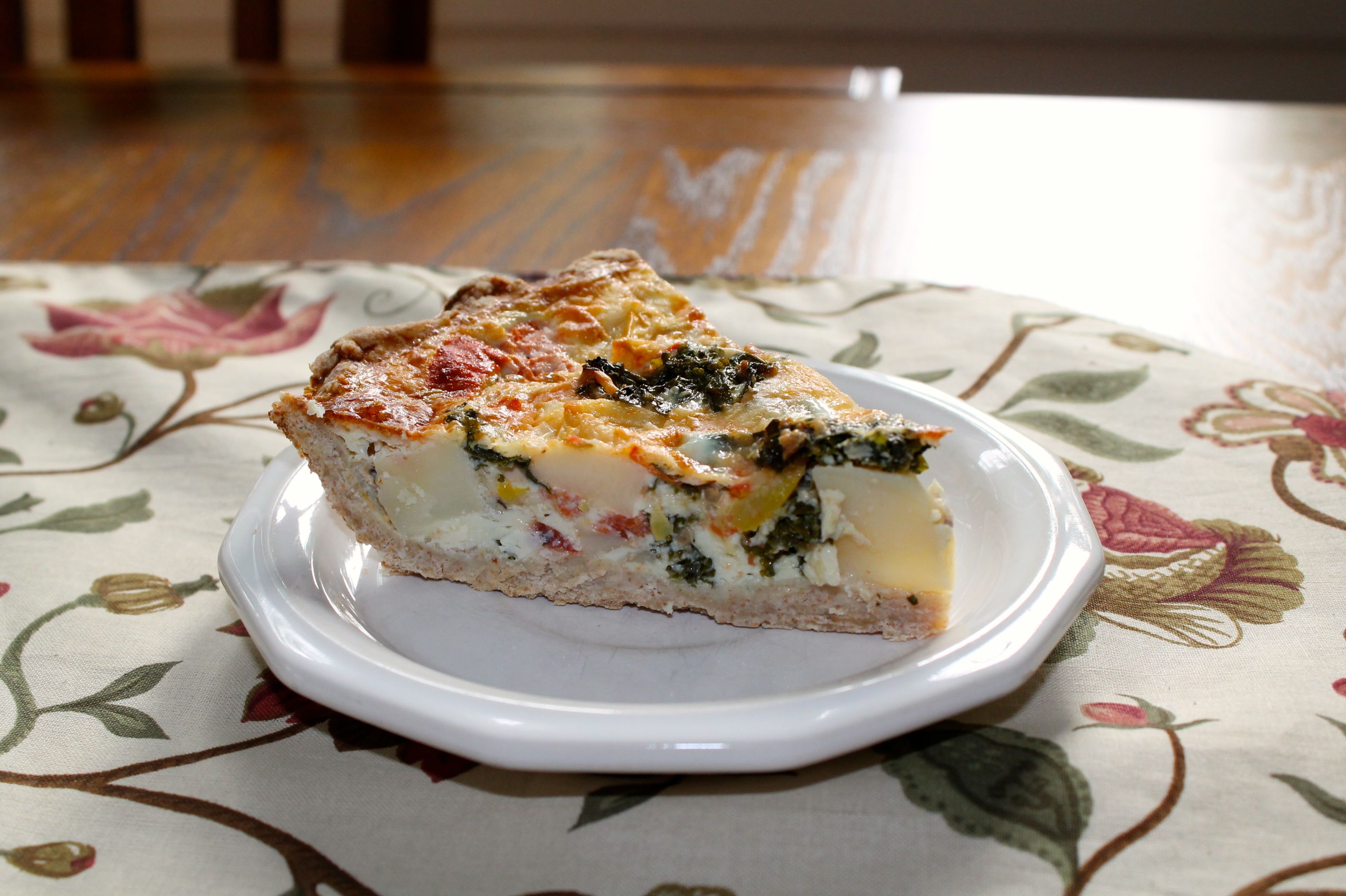 I love making quiches because the recipe is very loose and adaptable to what you have on hand. Quiche is an excellent way to use up whatever random veggies you have laying around — like the wilted kale in my fridge that needed to be cooked or thrown out.