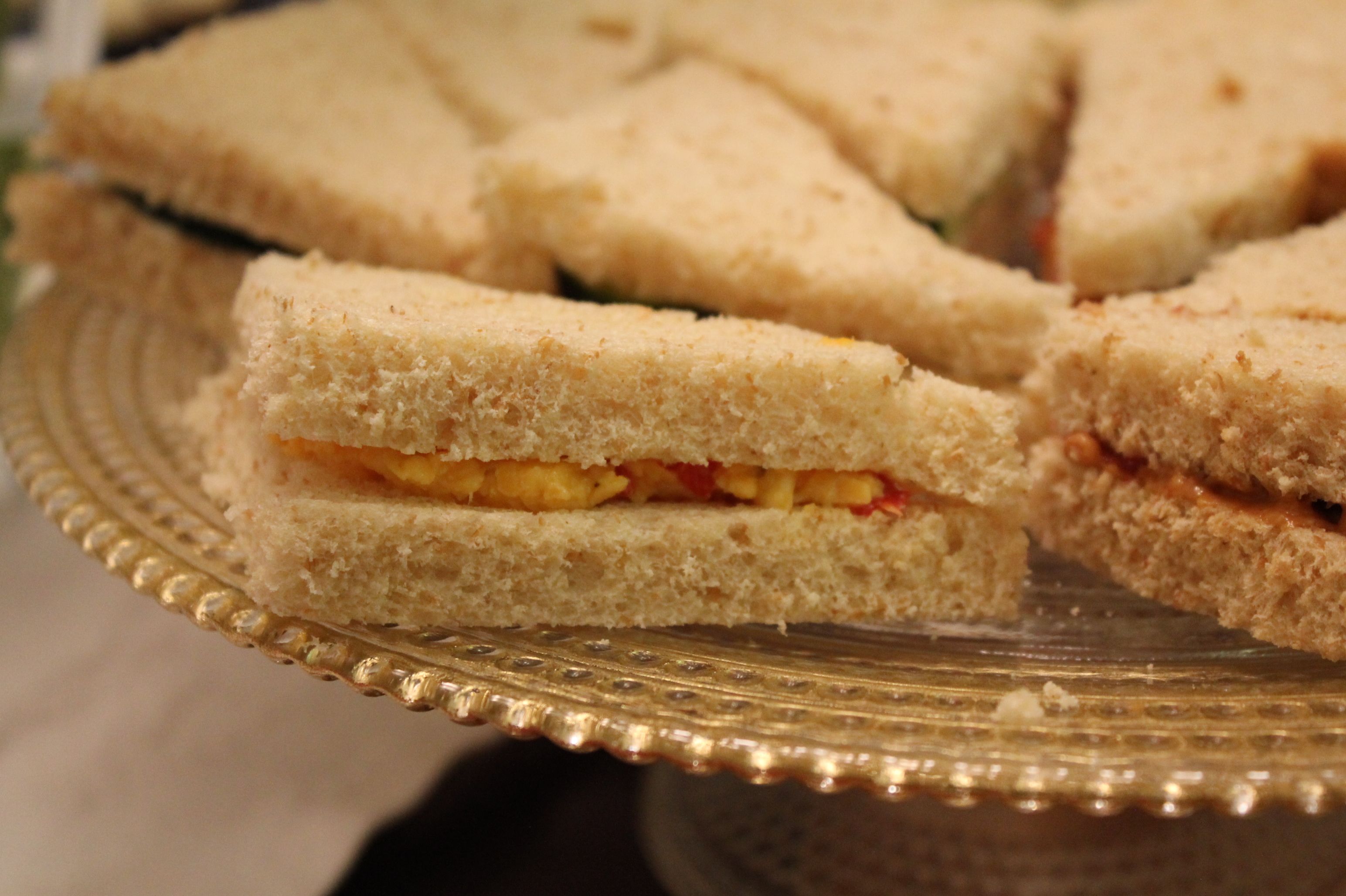 For book club, we’d read I Capture the Castle, a lovely coming-of-age story about a teenage girl living in genteel poverty in England. So to keep with the theme, we made tea party food: tea sandwiches, quiche, fruit salad, scones. I made three varieties of tea sandwiches: cucumber and cream cheese, peanut butter and raspberry jelly, and — the club favorite — pimento cheese. It was a lovely English/Southern fusion, and I highly recommend it. The pimento cheese was so popular that after we polished off all the little sandwiches, I set out the bowl of leftovers and some crackers, and we went to town on that too!